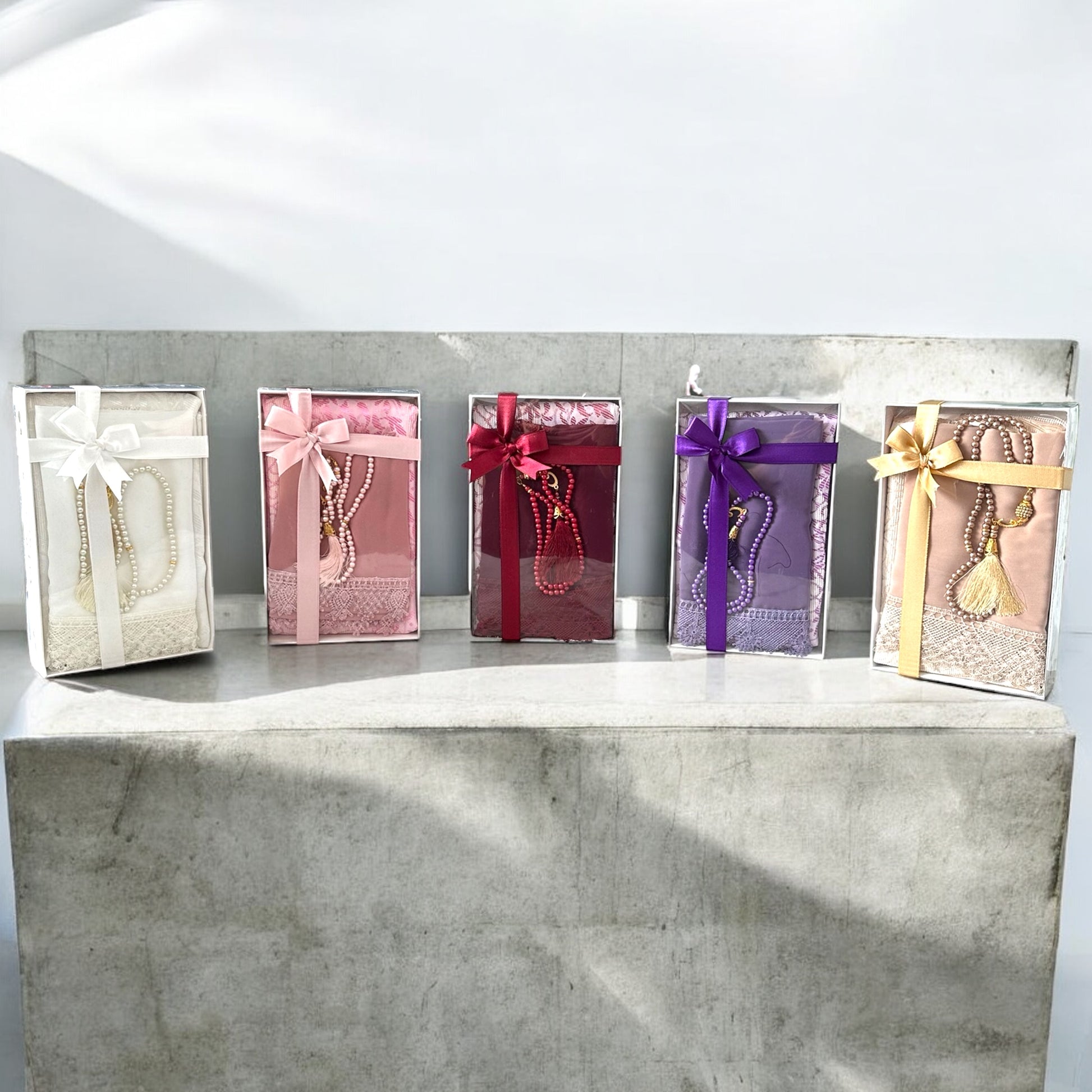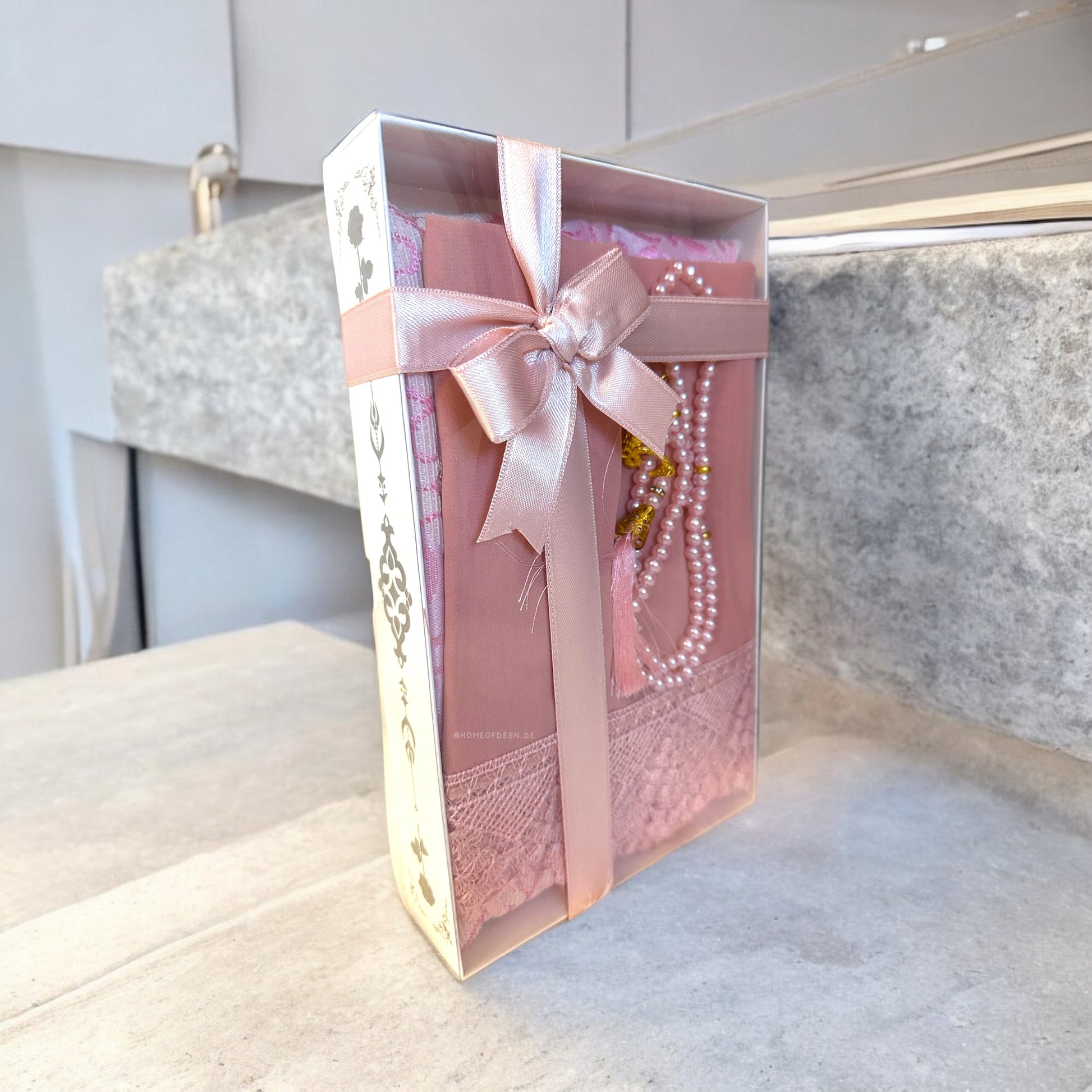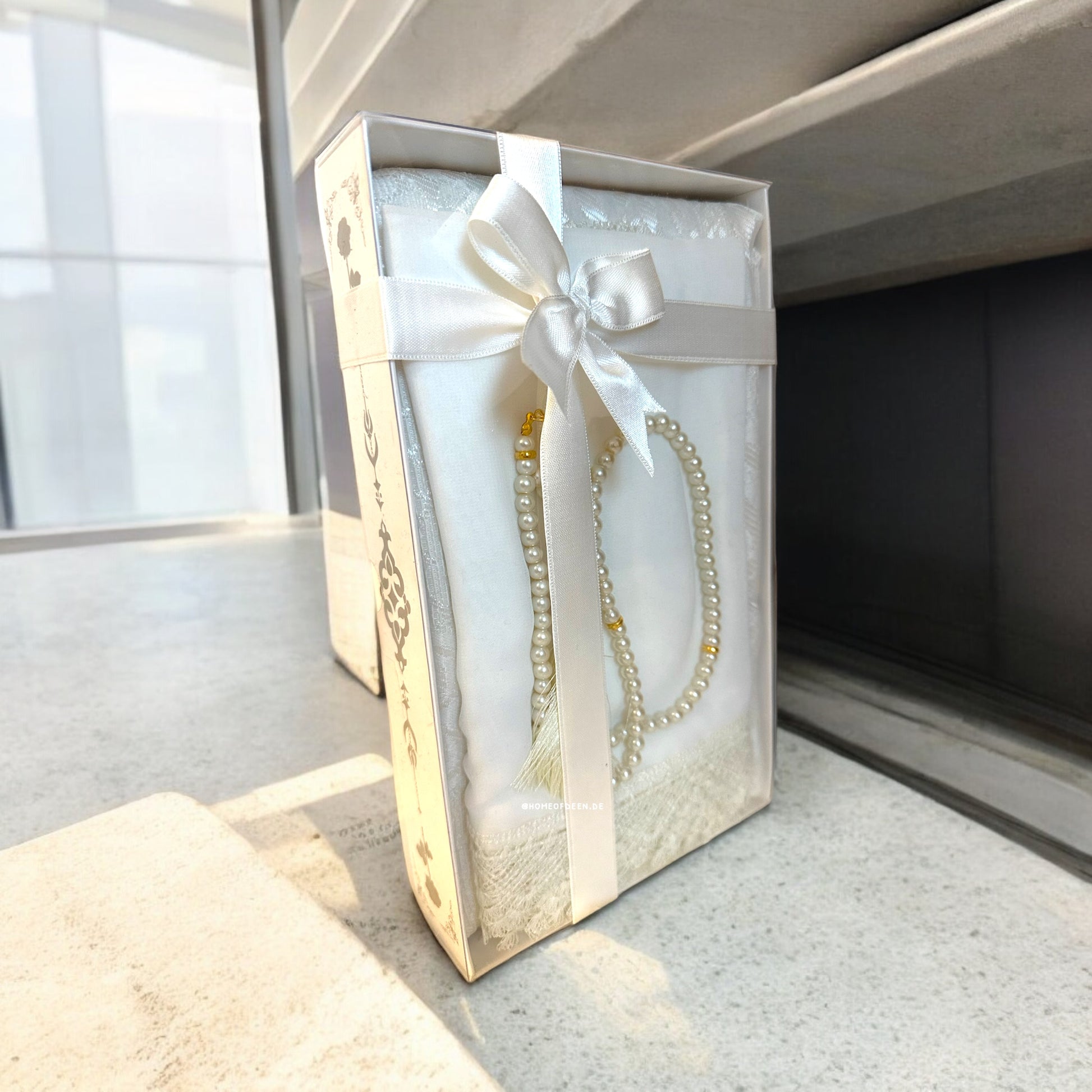 Unser Set bietet 1. einen hochwertigen Hijab von unvergleichlicher Qualität, 2. begleitet von einem detailverliebten Gebetsteppich 3. und einem edlen Tasbeeh. Jedes Stück wurde sorgsam ausgewählt, um deine spirituelle Reise zu bereichern. Präsentiert in einem ansprechenden Karton, verziert mit einer eleganten Schleife, ist dieses Set nicht nur ein Geschenk, sondern ein Ausdruck von Hingabe und Schönheit.