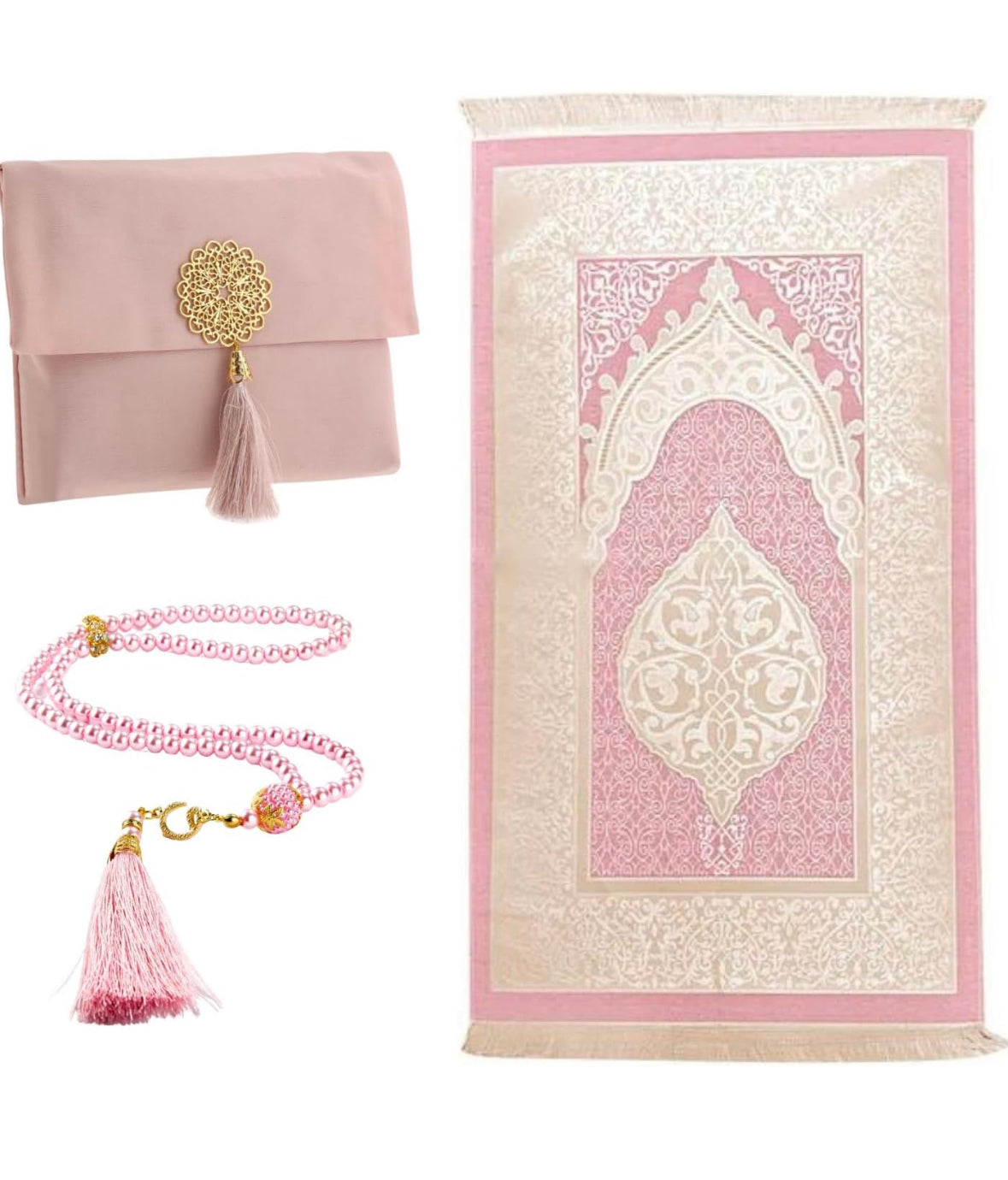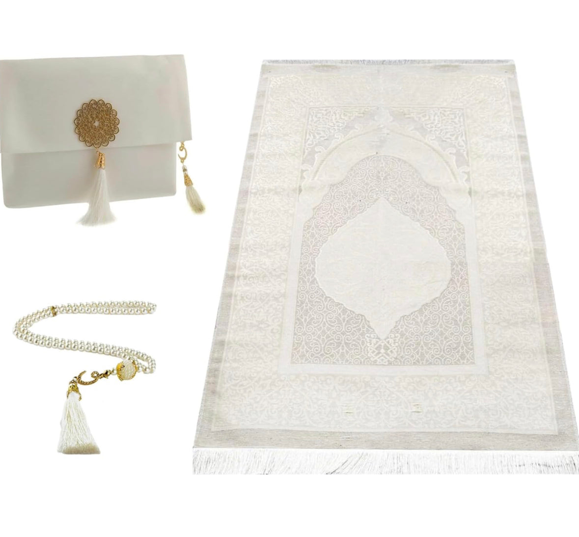 Entdecken Sie unseren exklusiven Reisegebetsteppich "To Go" – perfekt für unterwegs! Das Set beinhaltet 1. eine samtige Aufbewahrungstasche 2. ein passendes Tasbeeh und 3. einen Gebetsteppich alles in derselben ansprechenden Farbe. Kompakt und elegant designt, ist dieses Set ideal für Reisen – leicht mitzunehmen und passt überall perfekt hinein. Erleben Sie höchste Qualität und Schönheit für Ihre Gebetsmomente unterwegs.